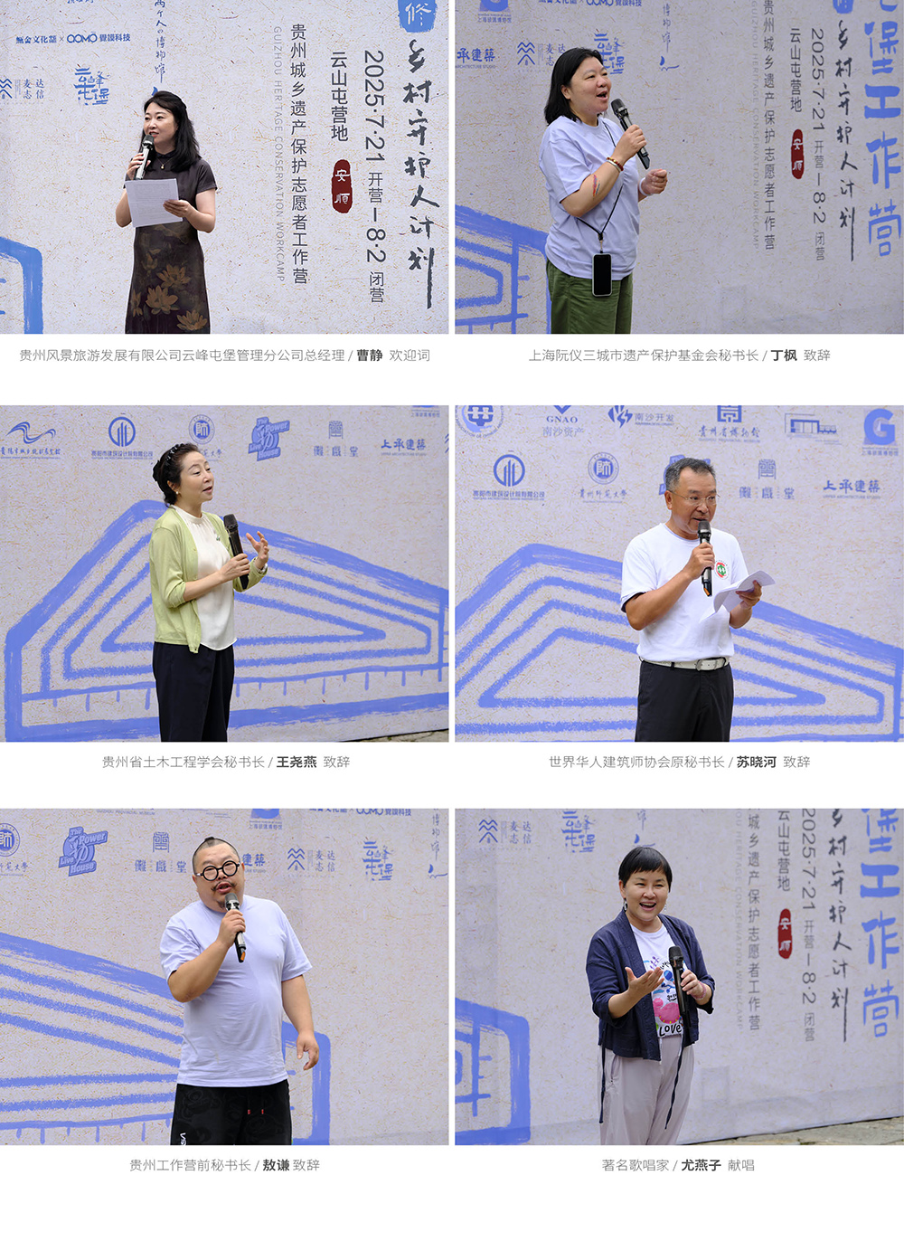 二十多位来自北京、上海、云南、成都、贵阳、安顺等多地的领导及嘉宾出席了本次开营仪式,贵州风景旅游发展有限公司党总支副书记、总经理曹静对云山屯的保护与发展进行了热情介绍,上海阮仪三城市遗产保护基金会丁枫秘书长则强调了上海阮仪三城市遗产保护基金会的使命,呼吁大家共同守护文化遗产。贵州省土木工程学会秘书长王尧燕从学术角度分享了对屯堡建筑遗产保护的专业见解,为活动增添了科学与前瞻性的视角。