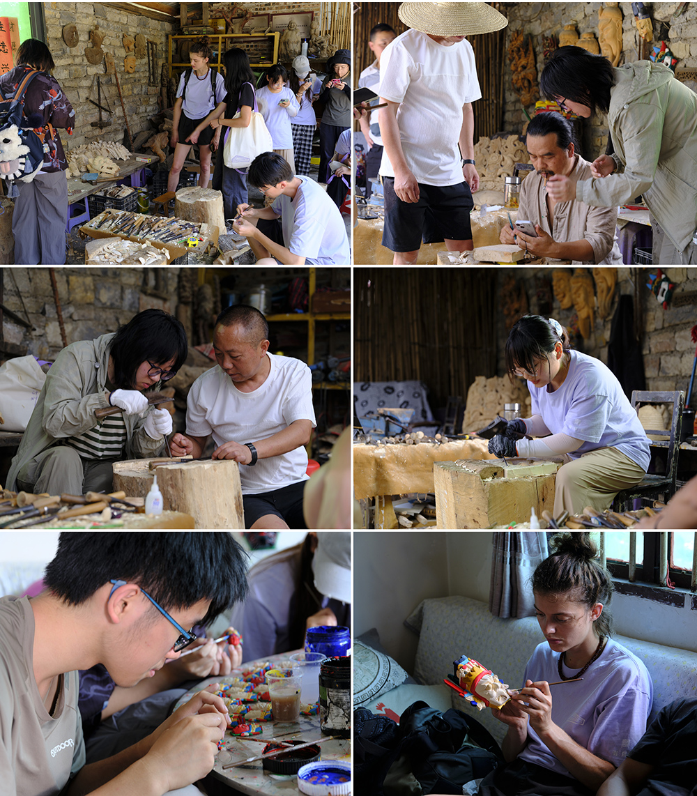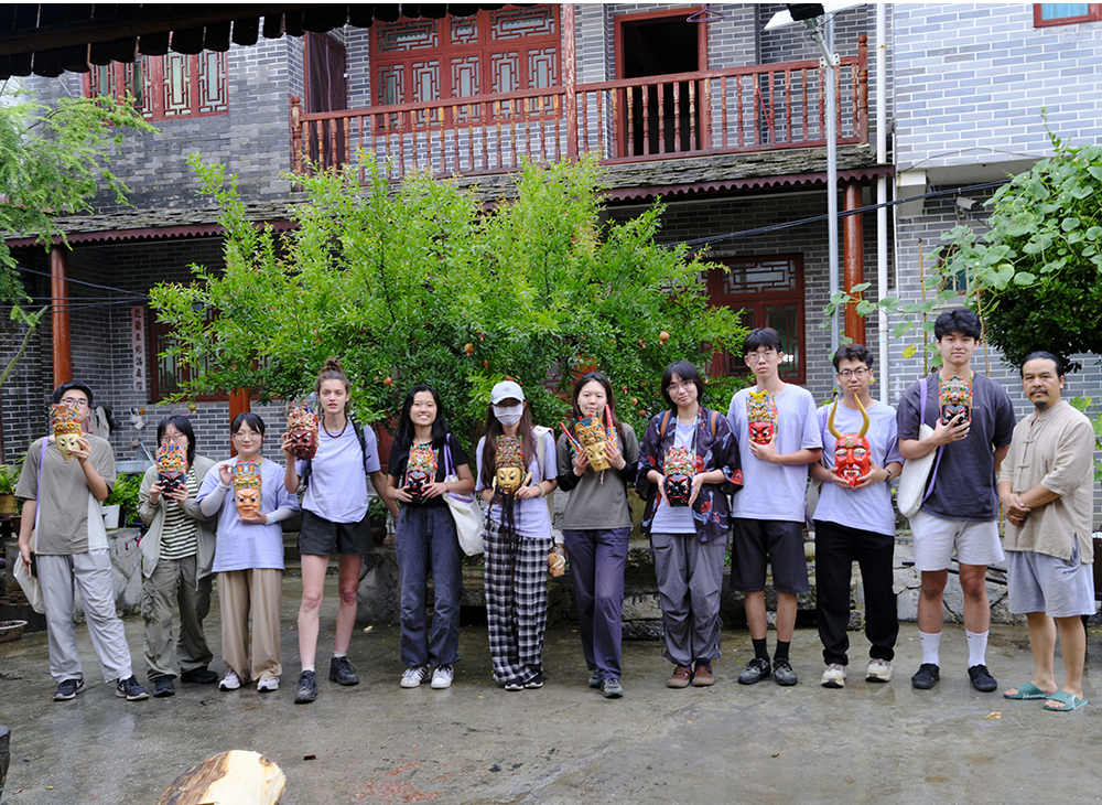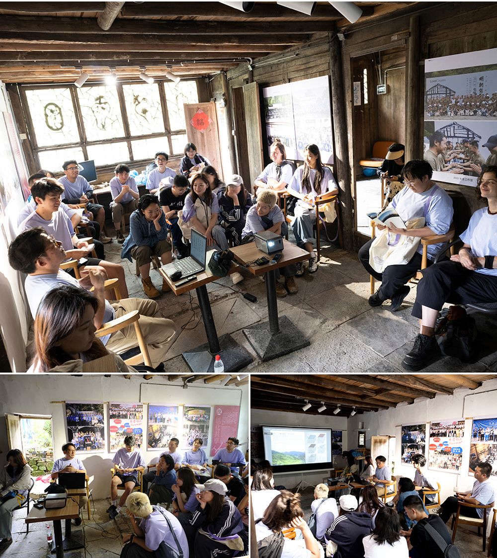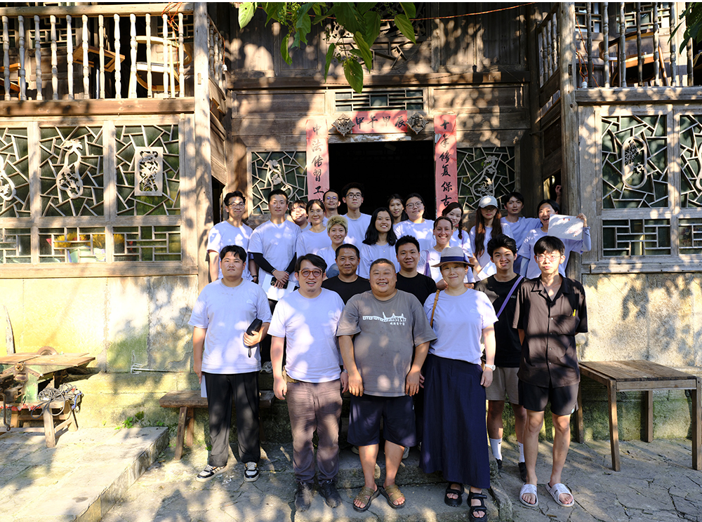 开营仪式现场,来自中国各地的21名志愿者,法国的3名志愿者们身着统一服装,向三位本地乡村匠师行拜师礼。下午,志愿者们在云山屯遗产保护工作站参加了培训课堂,系统学习了贵州乡村遗产保护的相关知识和技能,为接下来的修缮工作做准备。晚上,大家共同观看了独立艺术电影《脸谱》,在光影交织中进一步领略了屯堡文化的深厚内涵。