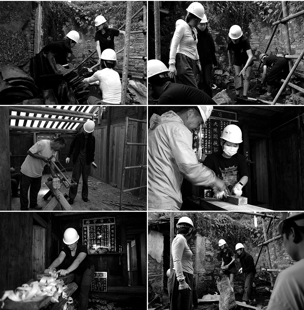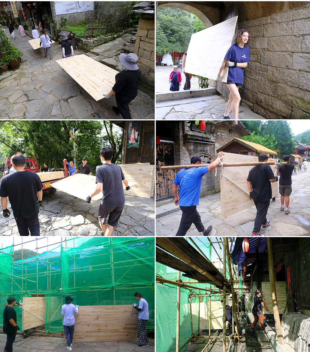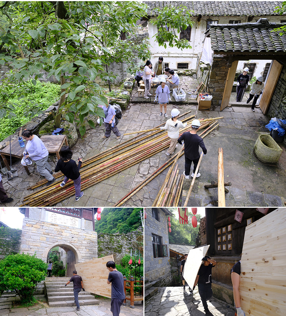 开营仪式现场,来自中国各地的21名志愿者,法国的3名志愿者们身着统一服装,向三位本地乡村匠师行拜师礼。下午,志愿者们在云山屯遗产保护工作站参加了培训课堂,系统学习了贵州乡村遗产保护的相关知识和技能,为接下来的修缮工作做准备。晚上,大家共同观看了独立艺术电影《脸谱》,在光影交织中进一步领略了屯堡文化的深厚内涵。